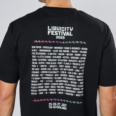 The official Liquicity Festival 2025 T-shirt. Front features this year’s festival logo, back lists the full line-up. Made for those who want to keep this edition alive forever.